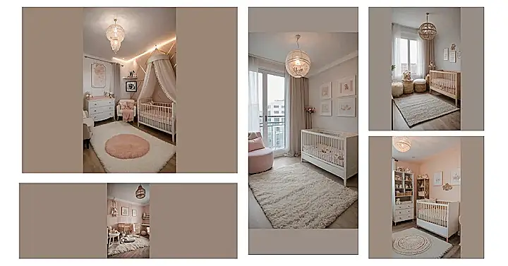 Walking into this newborn room is like stepping into a cloud made of marshmallows and fancy glitter. Seriously, with that giant sparkly light fixture hanging like a disco ball for dolls and the super fluffy rug that looks like a giant bunny exploded, you half expect a tiny royal baby to roll up in a chariot made of pure pink fluff. It’s all set up, waiting for the little human who will soon rule the house from their fancy crib, probably demanding snacks and naps at random hours. Good luck, future tiny boss!