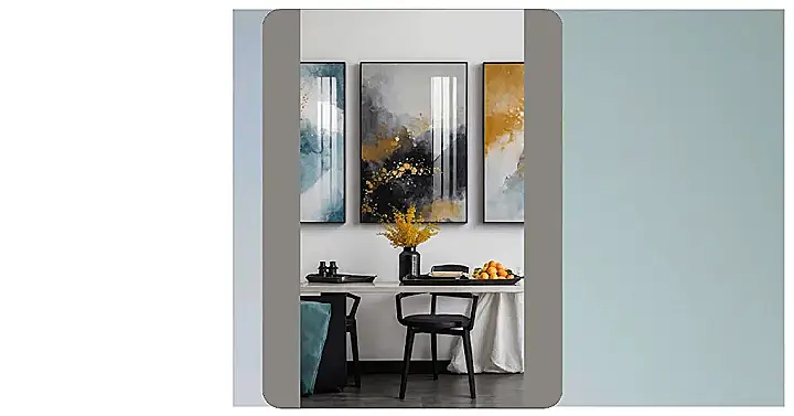 Eating near these paintings must be like having a fancy dinner party every night, even if you’re just having cereal. They give the whole room this sophisticated vibe, making you feel like you should probably use your best manners and maybe even discuss art… or just wonder how they got the gold to stick without falling off. They’re definitely conversation starters, unless you’re too busy staring at the shiny bits, which is totally understandable. It’s proof that a little wall art can really upgrade your snack time and make your dining room look like a million bucks (or at least, like it has a lot of gold paint).
