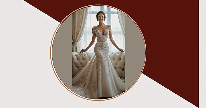 Stepping out in this dress, our bride definitely looks ready for her fairytale moment, and maybe even a red carpet premiere! This stunning gown, with its delicate lace sleeves and sparkling belt, isn’t just pretty; it’s practically a superhero suit. It hugs in all the right places, giving her that amazing hourglass shape that makes you wonder if there’s a secret invisible team of waist-cinching experts working behind the scenes. This is definitely a dress built for grand entrances, and possibly some epic slow-motion turns.