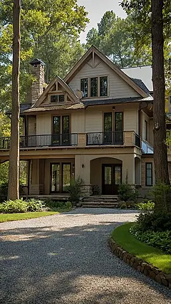 This house looks like something out of a fairytale! Imagine waking up in this beautiful country home, surrounded by towering trees and maybe even a friendly squirrel or two peeking at you from the branches. It’s got a porch perfect for sipping lemonade on a hot summer day, big windows to let in all the sunshine, and enough space for all your friends (and maybe even a pet llama if you’re feeling adventurous!). Who needs a castle when you can have this gorgeous, cozy retreat?