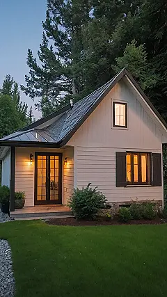 This little cottage house is like something out of a fairy tale, nestled amongst the trees like a secret hideaway. It’s small, yes, but with big windows that let in all the sunshine and a cute little porch to sit on. You can almost imagine yourself sipping lemonade on a warm summer day, watching the birds flit around in the trees, and feeling like you’re miles away from all the hustle and bustle of everyday life. Maybe it’s not a palace, but it’s cozy and full of charm, perfect for anyone who wants a little peace and quiet.