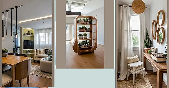 Trying to make a small room feel bigger? It’s like trying to cram all your textbooks into one locker – a real challenge! But check out this setup! Instead of bulky furniture taking up all the precious space, they’ve used plants and this cool shelf thing. It’s not just decoration; it’s like nature’s own room divider. The plants bring life to the space without making it feel cramped.