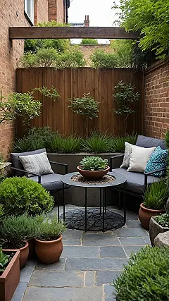 These small garden spots might not host a full marching band practice, but they’re perfect for maximum chill vibes. Look at that cozy seating area in the image – totally screams “hangout here and do nothing important.” You can squeeze in a spot for kicking back, maybe even something cool like that fire pit look-alike, without needing a treasure map to find your way back inside. It’s your personal oasis where the biggest decision is which snack to bring out. Easy to keep tidy, big on style, and your friends will be jealous.