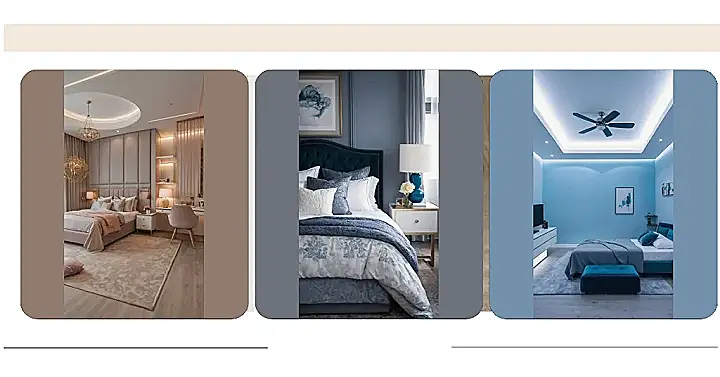 And check out that lighting! It’s not just some boring overhead bulb; those hidden lights make the room feel like it’s glowing from within, perfect for those late-night study sessions (or, let’s be real, gaming marathons). Plus, with that sleek ceiling fan, you’ll always have the perfect breeze to keep you cool, even if your crush just texted. This room isn’t just blue; it’s a whole mood board come to life, ready for epic naps, movie nights, or just a really good think while you stare at the pretty blue art. Who knew being ‘moody’ could look this good and feel this friendly?