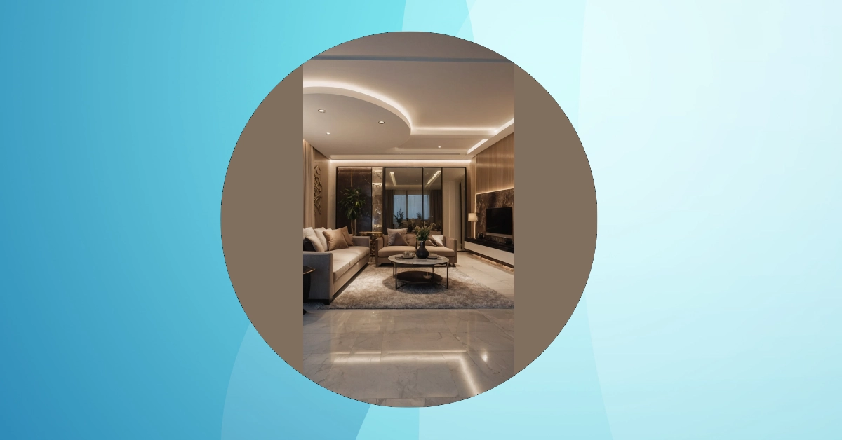 This living room is so fancy, it makes you want to wear a sparkly dress and eat only fancy snacks. Just look at that chandelier! It’s like a giant disco ball, but way more classy. And the floors are so shiny, you could probably see your reflection in them! It’s like walking into a palace, except instead of having to be a royal, you just have to have good taste.