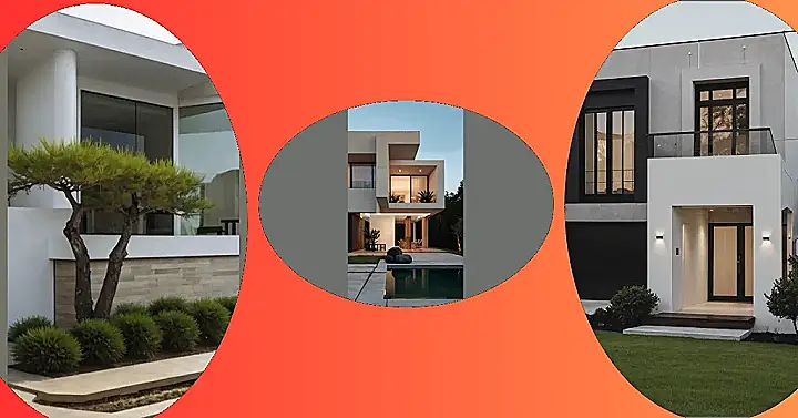 This house is like the opposite of a clown’s car: it’s all about clean lines and simple shapes. No crazy colors or decorations here! Just smooth white walls, a sleek door, and a few strategically placed plants. It’s kind of like a blank canvas – perfect for someone who wants to express their personality through their furniture and art, without being overwhelmed by a busy design.