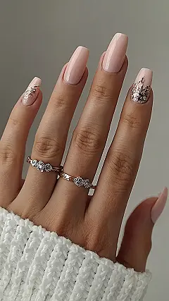 These nails are like a warm hug on a chilly fall day. The soft pink polish is as cozy as your favorite sweater, and the glittery accents are like the shimmering leaves on the trees. Plus, those rings are giving major “fall fashion” vibes, making it clear that these nails are ready for anything the season throws their way! They’re so cute, you might even want to wear them with your pajamas!