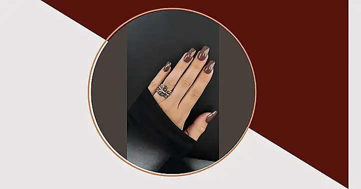 This picture is giving us major fall vibes! The rich, deep brown polish is perfect for embracing the cozy season. It’s like a warm cup of cocoa for your fingertips, but way less messy. Plus, those long, elegant nails are practically begging to be shown off. Imagine how good these will look with a chunky sweater and a pumpkin spice latte!