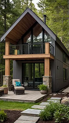 It’s like something out of a magazine, only better because it’s *yours*. You can picture yourself roasting marshmallows by a fireplace (okay, maybe that’s not in the picture, but we can add it to the plans!), having pizza nights with your friends, or just relaxing with a good book. This isn’t your grandma’s cabin; this is a modern masterpiece where the rustic charm meets sleek design. Plus, those stone steps leading to the cabin? Totally Instagram-worthy!