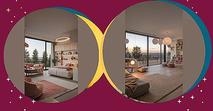 Look at those cool round windows! They’re like portholes to imagination, or just perfect spots to sit and pretend you’re in a spaceship or underwater base. Everything looks so soft and inviting, from the squishy pillows to the fluffy rug – you could spend hours just lounging around. It’s the kind of room that makes staying in feel like a special event, proving that luxury isn’t just about fancy stuff, but about having the coolest, coziest, most epic space to just be you.