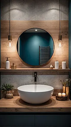 This isn’t your grandma’s pastel pink bathroom, that’s for sure! Check out that awesome bowl-shaped sink; it looks like something from a fancy art gallery, definitely not something you just spit toothpaste into. And who knew wood panels and a cute little plant could make a bathroom feel so cozy and inviting? With those lit candles, it practically screams, “Relax, you deserve it!”… just don’t accidentally set your hair on fire while trying to scroll through TikToks. It’s the kind of bathroom decor that makes even the dreaded morning routine feel a little bit luxurious, helping you almost forget about that early alarm.