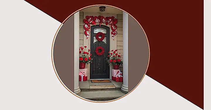 Seriously, who needs a dating app when your front door is this inviting? It’s like a love letter to anyone who walks past! And those little gift boxes on either side? Genius! They are probably empty and just decoration, but it will make everyone so curious about what is inside of the box. With this kind of Valentine’s Day door decoration, you are guaranteed to spread a little love (and maybe a little envy) in your neighborhood this year!