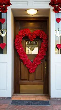 So, you want to impress that special someone? Forget cheesy chocolates – look at this door! This Valentine’s door decoration is like saying “I love you” without actually saying it (because sometimes words are hard, right?). With that heart-shaped wreath bursting with roses, you’re basically telling everyone that Cupid lives at your place. Plus, it’s way less embarrassing than wearing a heart-shaped suit.