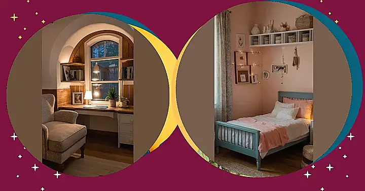 But the best part? It’s like the room itself is whispering “get creative!” There’s a desk for writing, a bookshelf for storing all your ideas, and even a little picture frame for displaying your masterpiece. Who needs a fancy art studio when you have a space this cozy? This room is definitely a place where dreams are made.