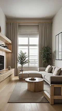 Imagine coming home after a long day of school and just sinking into that super chill living room. It’s like the opposite of chaos! The colors are all calming, like someone turned down the volume on the world. Plus, that little tree looks like it’s doing yoga—talk about good vibes! You could totally meditate there, or, you know, just binge-watch your favorite show without feeling guilty.