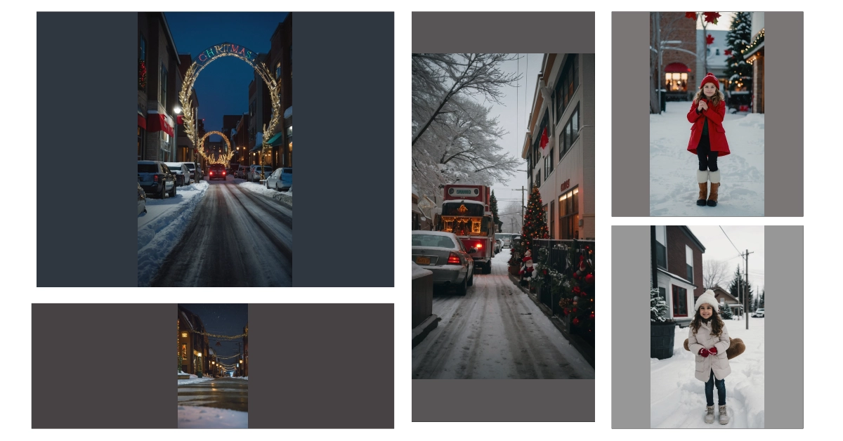 But wait, there’s more! Check out that charming street lined with beautifully decorated homes, each one trying to outdo the next with its festive cheer! It looks cozy and warm despite the winter chill, making you want to grab a hot chocolate and curl up by the fireplace. The whole scene just screams “Christmas in Canada,” full of festive magic and winter wonderland vibes. It’s enough to make even the grumpiest Grinch crack a smile – especially if that trolley bus is heading straight to a giant Christmas party!