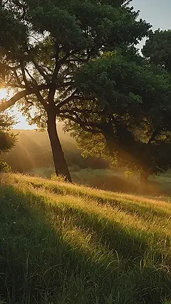 This picture is like a postcard from a super chill place – imagine whispering secrets to the trees while the sun paints the grass gold. It’s the kind of peaceful aesthetic nature place where you could totally forget about homework (don’t tell your teacher I said that!). The golden light filtering through the leaves is so magical, it’s like the trees are showing off their best Instagram filter. I bet squirrels are having epic hide-and-seek games in those branches right now!
