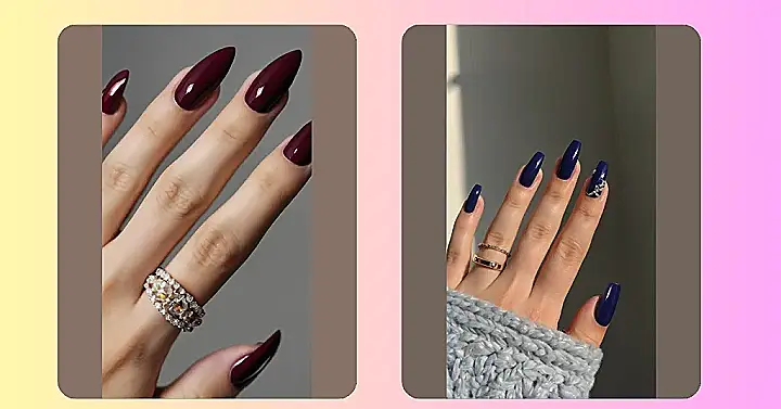 Those long, dark red nails are totally screaming “holiday party!” They’re like the sophisticated cousin of your sparkly Christmas sweater – elegant, festive, and ready to conquer the holiday cookie buffet (without smudging, of course!). Plus, that ring? It’s the perfect accessory to show off your fabulous nails while you’re unwrapping presents or dancing the night away!
