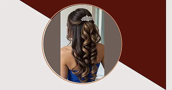 Choosing a hairstyle for a big event can feel like trying to decide which flavour of ice cream to eat forever. But check out this look from the picture! It’s the ‘half up, half down’ magic trick. It’s like saying, “I’m fancy, but I also like my hair to flow like a mermaid.” Plus, that sparkly thingy adds major princess vibes without needing a full-on tiara. It keeps the top part looking neat, so you don’t have to worry about hair flying into your face when you’re trying to look glamorous, which is always a win.
