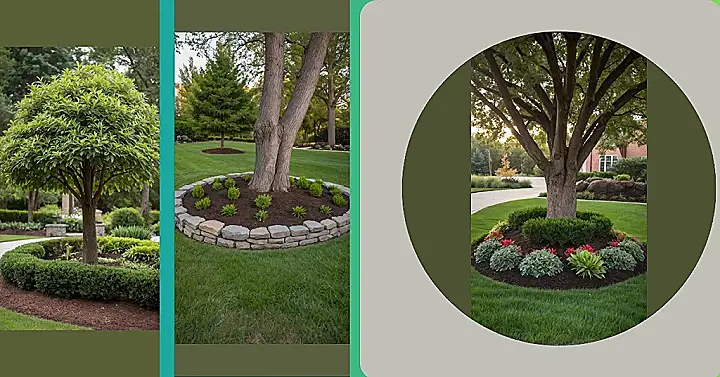 Putting this landscaping around the tree’s base isn’t just for showing off, though. It’s like building a tiny moat of mulch to keep moisture in and weeds out – basically giving the tree everything it needs to thrive while looking fabulous. It also creates a clear boundary so the lawnmower doesn’t accidentally get too close and give the tree’s trunk a bad haircut. Plus, it gives squirrels a designated fancy zone for burying nuts, far away from your prize-winning petunias. It’s a win-win for everyone, including the tree, which is probably giving a silent cheer for its upgraded surroundings.