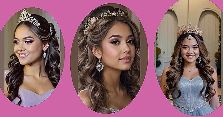 With the gentle touch of a skilled hairstylist, your chosen tiara tresses can become a whimsical masterpiece, reflecting your unique personality and style. Imagine the graceful updo that weaves tiny jewels into a crown-like formation, or the romantic half-up hairstyle that frames your face with soft waves. The possibilities for your Quinceañera crown hairstyle are as vast as your imagination, allowing you to embrace your royal essence with elegance and poise. Let your tiara tresses be a symbol of your grace, celebrating the vibrant spirit that defines this unforgettable moment in your journey.