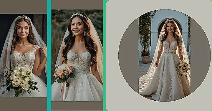 So, you know how sometimes you just want to feel like royalty? Well, bridal fashion says, “Hold my bouquet!” This look with the sparkly crown sitting pretty and that dramatic veil flowing like a superhero cape is total queen vibes. She looks absolutely ready for her moment, probably trying to calculate the exact distance she needs to stand from everything to avoid snagging that gorgeous lace train. It’s all about making an entrance that screams “fairy tale,” while secretly hoping you don’t trip on the way down the aisle.