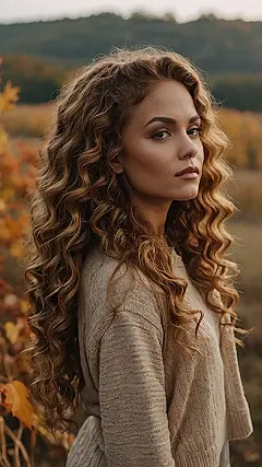This girl’s hair is like a warm hug on a crisp autumn day. It’s full of life and movement, just like the leaves swirling around her. You can tell she’s embracing the season, and that’s what makes her look so effortlessly chic. With curls like that, who needs a pumpkin spice latte? This girl’s got all the autumn vibes she needs, right there on her head!