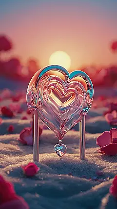 This picture is seriously adorable! It’s like a glass heart decided to have a romantic beach vacation at sunset. Imagine: You’re on a secret, sparkly beach, the sun is going down in a gorgeous pink and orange sky, and there’s this super cute, glass heart just chilling there, surrounded by rose petals. It’s the perfect backdrop for your phone, especially if you want to show off your totally awesome Valentine’s Day spirit. This would make even the grumpiest Cupid smile!