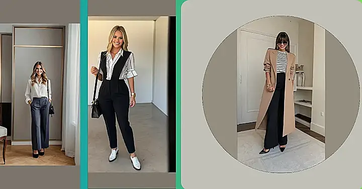 This outfit is like the business casual version of a superhero costume – super comfy, super stylish, and ready to tackle any spreadsheet battle! Picture yourself strutting into the office with that white shirt and sleek black pants, ready to negotiate deals and answer emails. Who knew looking professional could also feel like you’re about to drop some killer samba moves on the boardroom floor?