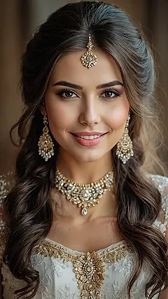 This is the kind of hairstyle that makes you want to do a slow-motion hair flip, even if you’re just walking to the fridge. The way it cascades down with those elegant waves, combined with the blingy accessories, makes the bride look like she stepped straight out of a fairy tale but like, the really fancy, VIP version. It’s not just hair; it’s an event! You could honestly frame this hair and put it in a museum. It’s proof that sometimes, your hair accessory can be your best friend, especially when it looks like it borrowed diamonds from a super famous celebrity.
