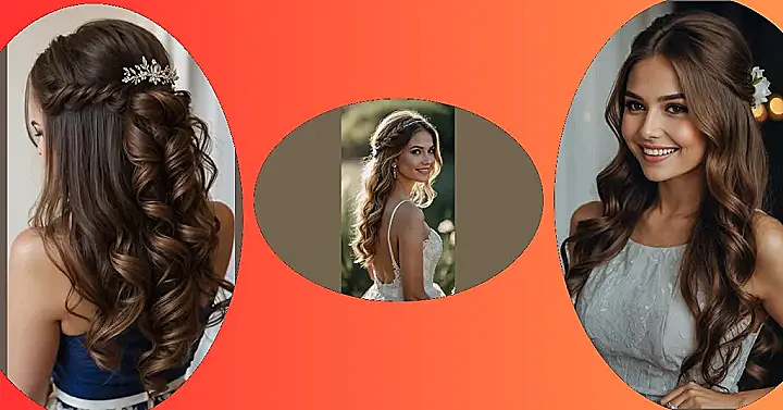 Let’s be real, a daytime wedding means you gotta battle the sun, maybe a sneaky gust of wind, and then later, bust some serious moves on the dance floor. This style seen here is practically a superhero for such events. The half-up part keeps things neat and tidy for those important “I do” moments, while the flowing curls down your back are ready to join the party when the DJ drops your jam. It’s the perfect balance: looking effortlessly glam while secretly being indestructible against the elements and questionable dance moves.