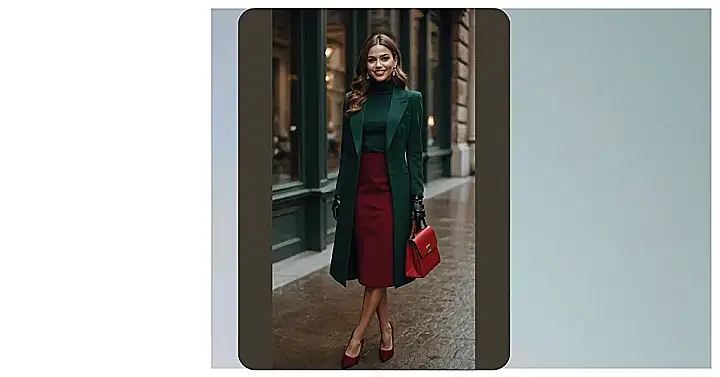 We all know the holiday party struggle is real when you’re trying to find that perfect outfit. You want to look super festive, but definitely not like you accidentally got tangled in the Christmas tree lights! This look completely nails it, showing off major holiday cheer with its rich green and deep red combo. It’s giving off serious “I just woke up this fabulous” vibes, making you look effortlessly chic without having to wear a single sequin (unless you want to, of course!). You’ll be ready to jingle all the way and snag all the compliments.