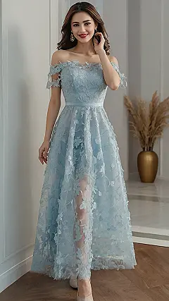 This dress is like a dream come true – it’s totally “Bluetiful”! It’s like a princess from a fairy tale stepped out of a storybook. Just imagine: you’re walking into a fancy party, and all eyes are on you! You feel like you’re floating on a cloud, with the soft blue fabric and the pretty little flowers. It’s the perfect dress for feeling confident and gorgeous, even if you don’t know how to do a fancy curtsy!