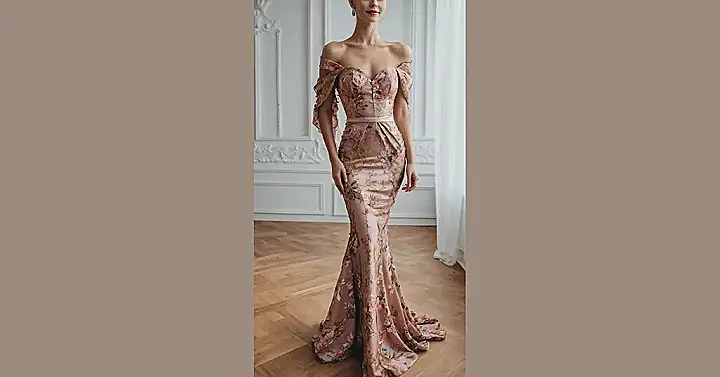 Looking at this amazing dress, you can totally picture yourself walking into the fanciest evening party ever and instantly feeling like royalty. It’s got that beautiful flowy skirt and all the detailed sparkle that just screams “classy evening party dress.” Wearing something this stunning must give you major confidence, like you could conquer the dance floor or just stand there looking fabulous while everyone admires how gorgeous you look. It’s the kind of outfit that makes you feel ready for anything, as long as “anything” involves looking incredibly put-together.
