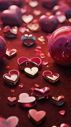 This picture is like a Valentine’s Day explosion of hearts! It’s totally adorable with all these shiny, pink, and gold hearts scattered everywhere. It’s like someone accidentally spilled a giant box of the cutest candy hearts ever – except these ones are way too pretty to eat! You could totally set this as your phone background and make everyone jealous of your super cute Valentine’s Day spirit. Just imagine all the likes you’ll get!