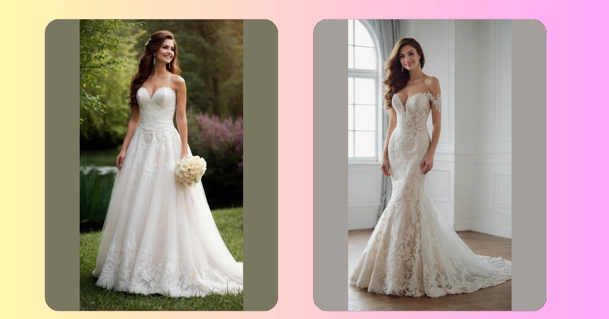 The girl in this picture looks absolutely ready to shine, doesn’t she? With her gorgeous smile and flowing hair, she’s totally rocking that dreamy white wedding gown. It’s packed with delicate lace details and has a super pretty sweetheart neckline, making her look like she just stepped out of a fairytale, especially in that lovely garden setting. But if you were scanning for a “mermaid wedding dress,” you might notice this one is more “grand princess” than “under-the-sea queen.” Instead of a sleek, fin-like silhouette that hugs every curve, she’s got a magnificent skirt perfect for gliding down the aisle, not swimming with your fishy friends.