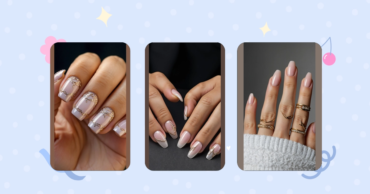 Think about the classic French tip nails – they’re like the reliable best friend of manicure styles, always looking neat and tidy. But sometimes, even your best friend needs a little sparkle! Look at these nails in the picture; they took the basic white tip and said, “Let’s add some bling!” That little wavy gold line isn’t just a line, it’s like a tiny, fancy headband for your nail tip, making it look instantly more interesting and less ‘plain Jane’.
