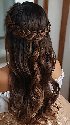 Don’t worry about the braid being too complicated. It’s just a simple crown of braids that sits on top of your head. The curls are the real star! They add a touch of romance and make your hair look super luxurious. If you’re looking for a hairstyle that will make you stand out, this is the one! Just add a little bit of hairspray and get ready to have some fun!
