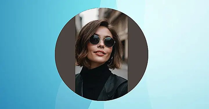 This girl’s rocking a shoulder-length bob that’s totally chic! It’s like the perfect mix of edgy and cute – imagine a superhero who also happens to be a fashion icon. Those sunglasses are the cherry on top, making her look super cool and mysterious, ready to solve any style crime that comes her way. Plus, that black turtleneck and jacket? Total power move. She’s ready to conquer the world, one perfectly-styled hair flip at a time.