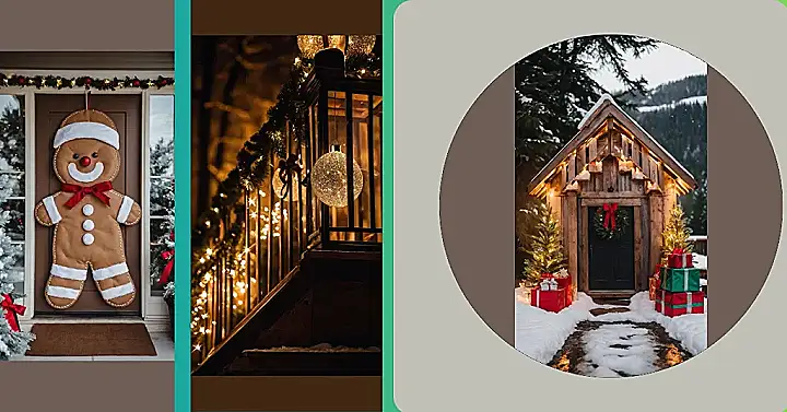 Who needs a boring old wreath when you can have a giant gingerbread person practically jumping off your door to say hello? This cheerful fellow, complete with a bright red nose and an even brighter smile, looks ready to greet every mail carrier and delivery person with a sugary hug. Decked out in his best “frosting” and a snazzy red bow, he’s definitely winning the award for the most delicious-looking outdoor Christmas decoration on the block, making everyone wish they had a real cookie that big!