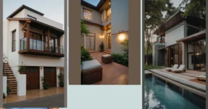 And let’s talk about that backyard situation – it’s less “backyard” and more “private resort.” With a sleek pool inviting you to dive in and those super comfy-looking lounge chairs, this isn’t just a house; it’s a permanent vacation spot. It practically screams for epic pool parties or just a chill evening staring at the stars, maybe with some friends plotting world domination. This house doesn’t just sit *in* nature; it basically gives nature a high-five, saying, “Hey, thanks for the awesome view and the perfect backdrop for my super cool life!”