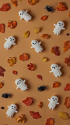 This Halloween wallpaper is like a spooky party for your phone! Imagine a bunch of friendly ghosts having a picnic on a bed of autumn leaves. They’re just hanging out, enjoying the crisp fall air, and maybe even sharing some candy corn (we’ve heard those ghosts are big fans!).