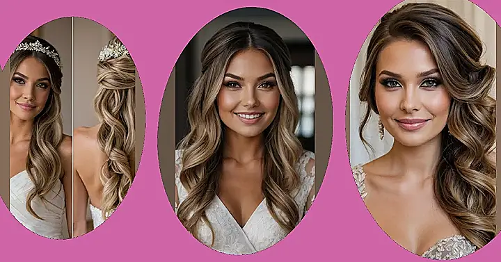 And the best part? These looks are actually pretty easy to achieve. No crazy intricate braids or updos needed – just some curls and a little bit of styling magic! Plus, the accessories add that extra touch of glam without being over-the-top. So whether you’re going for a fairytale wedding or a more modern celebration, these hairstyles are total winners!