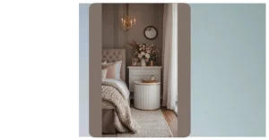 And just when you thought it couldn’t get any better, check out those snazzy gold accents and the elegant side tables, perfect for holding your phone (after you’ve taken a million selfies, of course) or maybe even a fancy glass of sparkling cider. That tufted headboard makes you feel like royalty, or at least like someone very important who gets extra comfortable things. This isn’t just a room; it’s practically a pampering paradise designed for maximum chill and looking ridiculously chic while doing absolutely nothing.