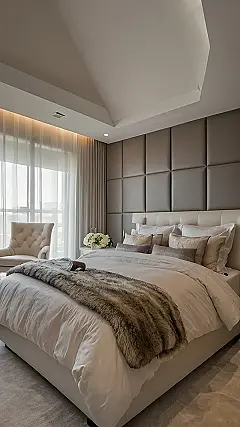 Imagine having your own personal chill zone that looks like this! This master suite is so fancy, it probably has its own butler to bring you snacks in bed. The headboard looks like a futuristic marshmallow wall and the lighting is so extra, it’s practically throwing a party. Who needs to leave the house when your bedroom is basically a five-star hotel?