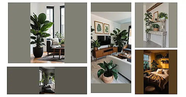 Look at that giant green buddy chilling in the corner! He’s practically a whole tree decided to move indoors, probably because rent is cheaper there. Having room plants, especially one this big, is like getting a leafy roommate who doesn’t hog the remote or eat all your snacks. They just hang out, look cool, and maybe quietly judge your questionable life choices while doing their whole photosynthesis thing. It’s a vibe, adding some serious jungle energy without actually having to deal with bugs (hopefully).