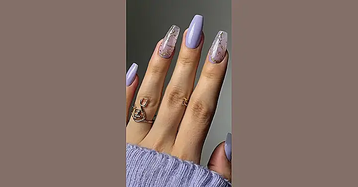 These acrylic nails are giving us major Scorpio vibes! They’re long, they’re fierce, and they’re definitely not afraid to stand out. The lavender color is so dreamy and the golden flecks add a touch of extra pizzazz. It’s like the nail version of a glittery, sparkly scorpion, but way more fun!