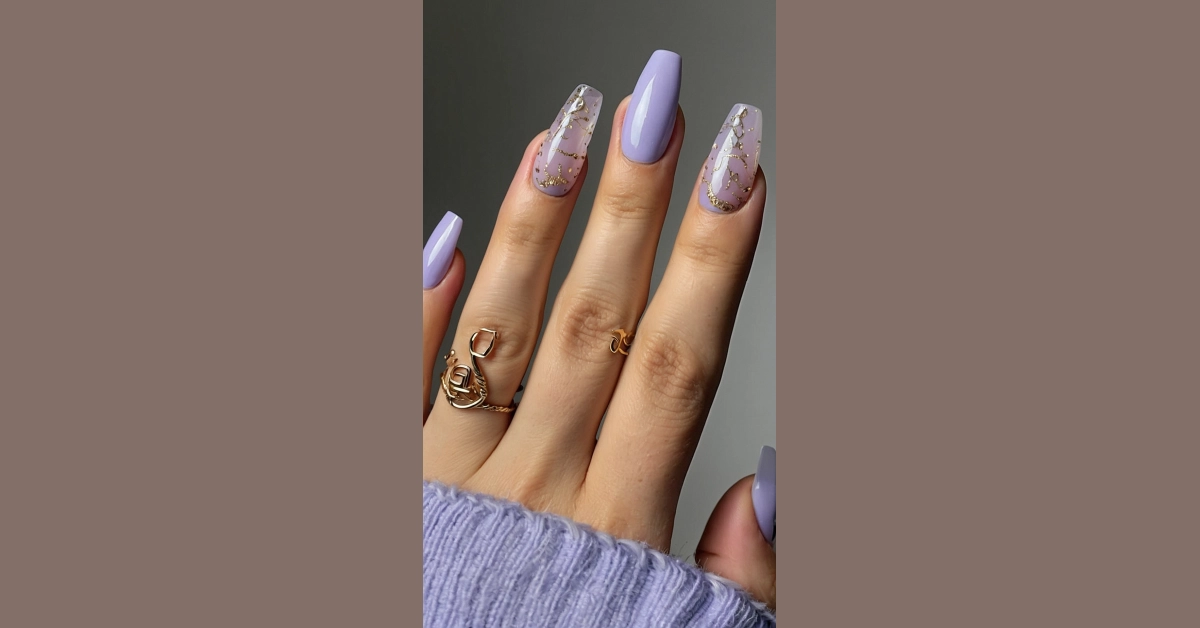 These acrylic nails are giving us major Scorpio vibes! They’re long, they’re fierce, and they’re definitely not afraid to stand out. The lavender color is so dreamy and the golden flecks add a touch of extra pizzazz. It’s like the nail version of a glittery, sparkly scorpion, but way more fun!