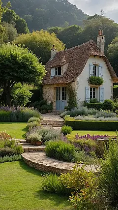 You know how sometimes you see a picture and just think, “Yep, that’s my entire life plan now”? Well, this beautiful stone cottage, dripping in green vines with those dreamy light blue shutters, is totally that picture for me! It perfectly nails the whole ‘French country garden’ vibe, making you want to ditch your backpack and permanently move in. I’m pretty sure the only homework here would be identifying all the amazing flowers, and honestly, I’d probably get an A+. Just imagine those stone steps leading you past bursts of purple lavender and lush green bushes, right up to a doorway that looks like it guards the world’s most peaceful nap spot. It’s so charming, you can practically smell the fresh croissants and hear a gentle “bonjour” from the breeze!
