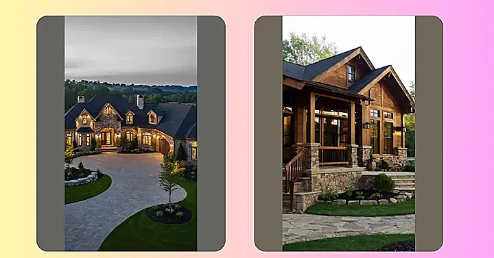 This house is seriously awesome! Just imagine yourself living in this beautiful country home, maybe roasting marshmallows by a crackling fireplace (which I bet it has!), and sipping hot cocoa while watching the sunset. It looks like a place straight out of a fairytale, with its cozy wooden exterior and super-cool stonework. That porch is calling my name—perfect for relaxing with a good book or having a backyard barbecue with friends. It’s the kind of place where you could easily spend a whole weekend just chilling and enjoying the peace and quiet.